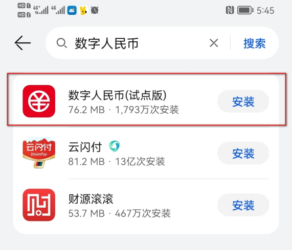 1.1 通过应用市场或App store搜索“数字人名币”App,并下载安装: