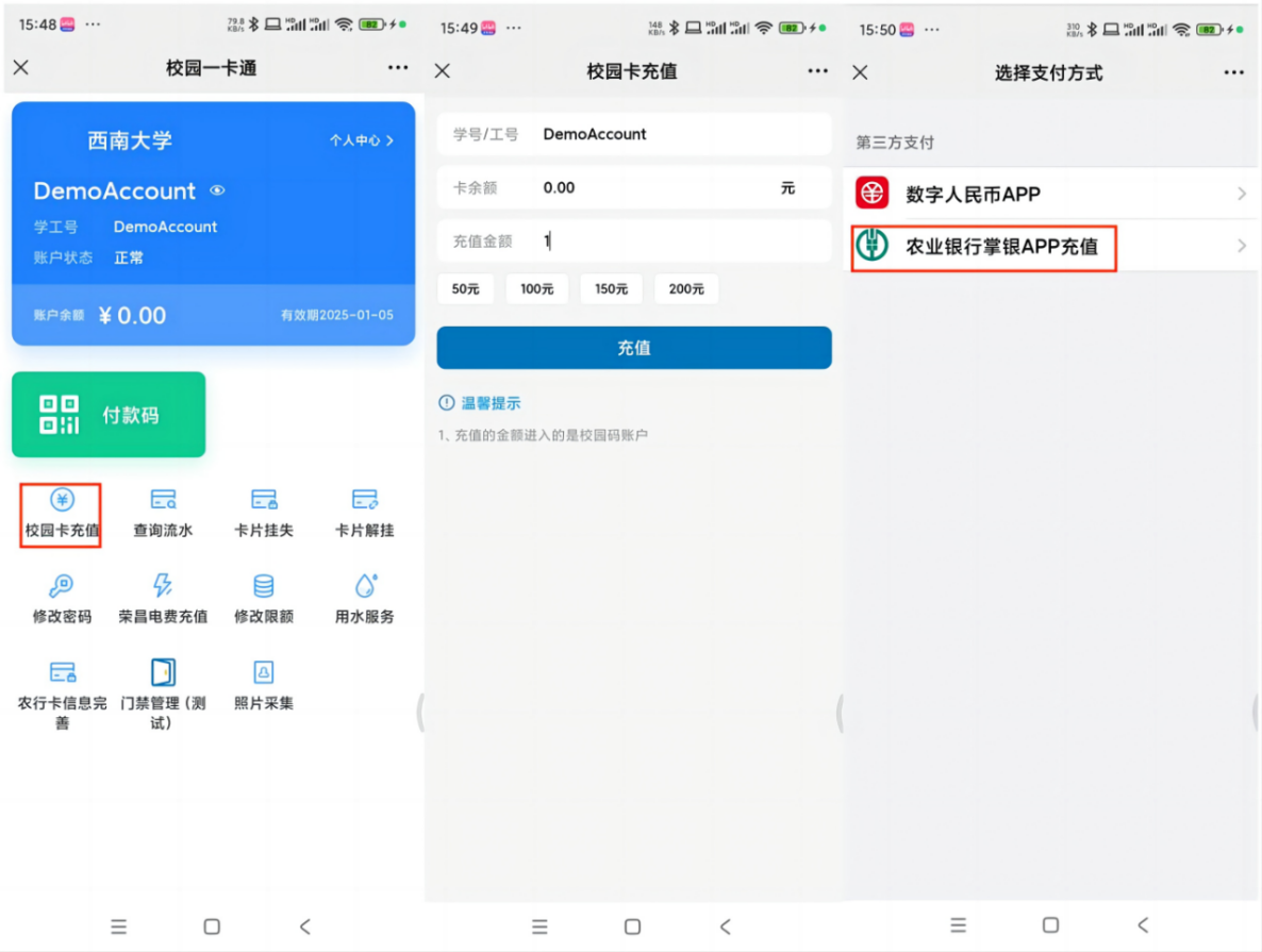 三、新版校园卡(虚拟卡)农行充值