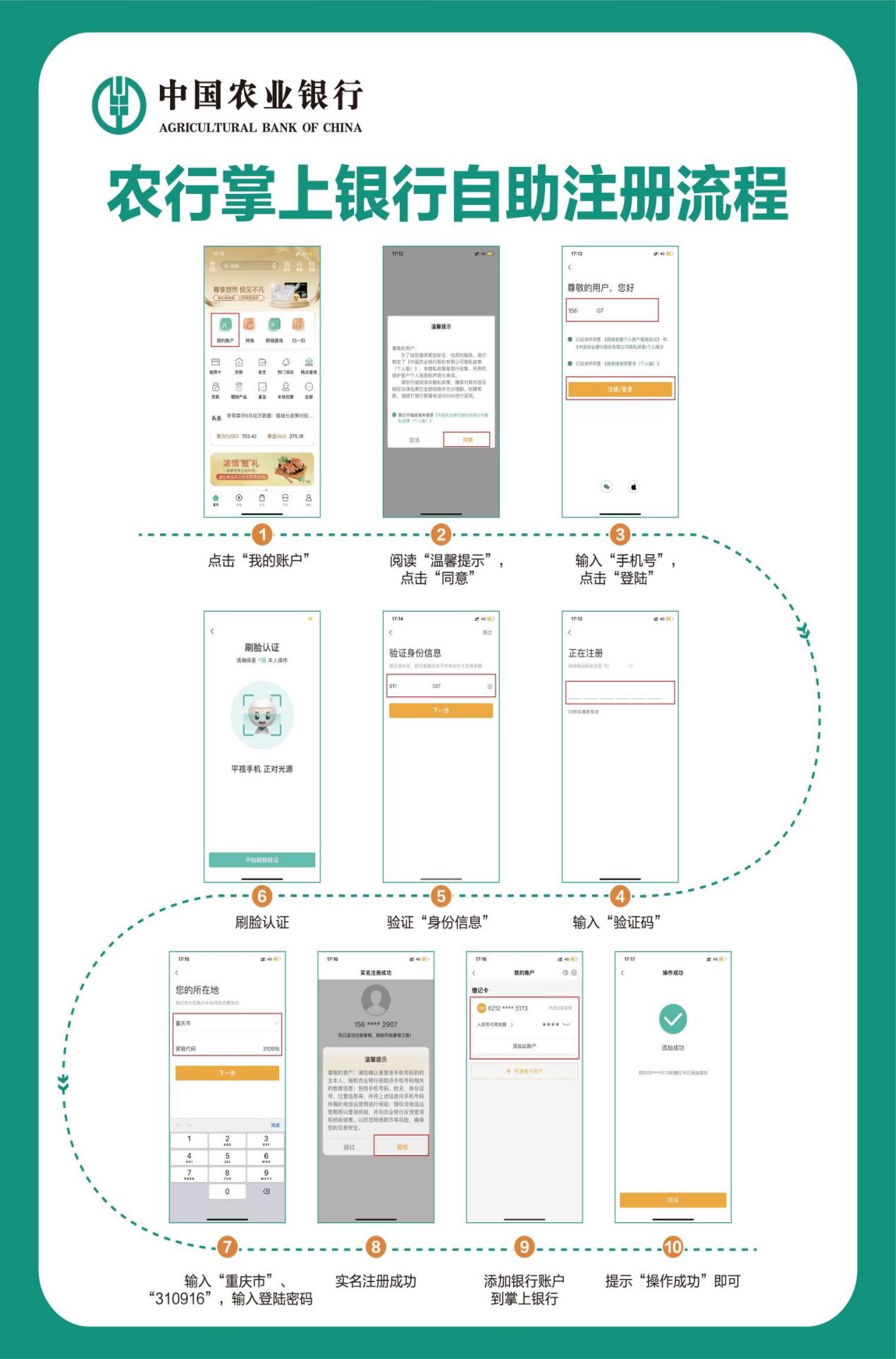 1.应用市场下载“中国农业银行”APP并自助注册