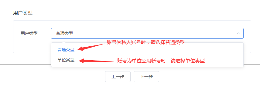 当前账号为公用办公帐号时,用户类型选项请选择“单位类型”