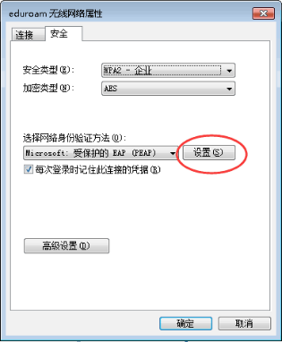 7. 如下图提示,选择“Microsoft:受保护的EAP(PEAP)”,点击“设