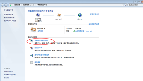 2. 选择“设置新的连接或网络” ,如下图所示: