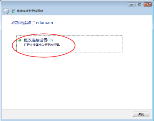 5. 出现成功添加的提示,请点击“更改连接设置”,如下图所示: