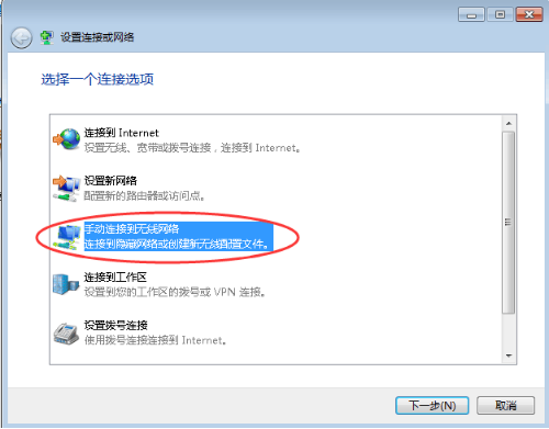 3. 选择“手动连接到无线网络” ,如下图所示: