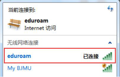 14. 如果账号格式正确,并且密码无误,即可自动成功连接eduroam网络,如下图所示: