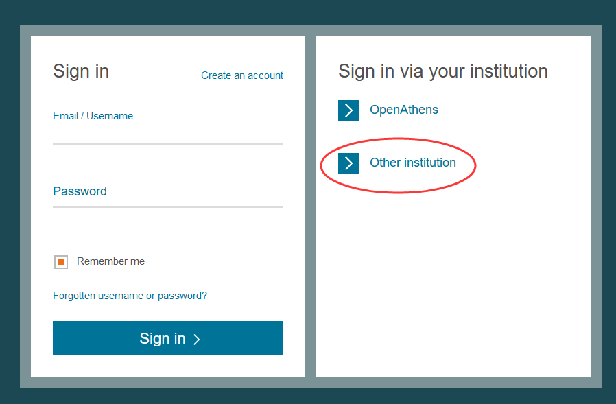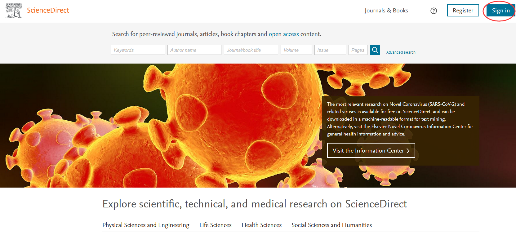 1.使用非校园 IP 地址打开https://www.sciencedirect.com。选择“sign in”,选择“other institution”,进入身份联盟选择页面。