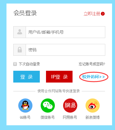 1.使用非校园网IP地址打开https://www.cnki.net/,点击“登录”,点击“校外访问”