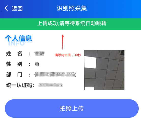 5、上传照片后请等待系统审核,大概需要半分钟时间。